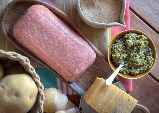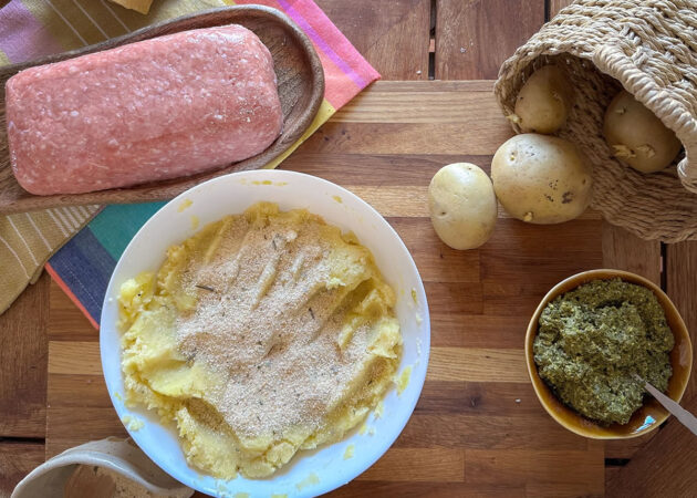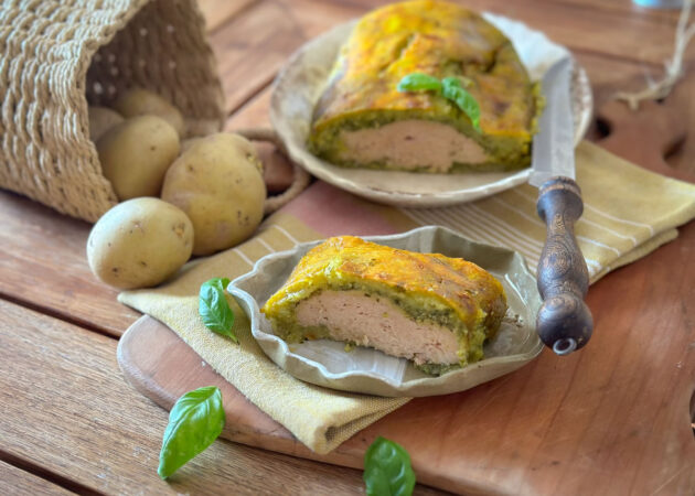 - Spalmare il pesto sulle patate lasciando tutto intorno un margine di 2 cm;
