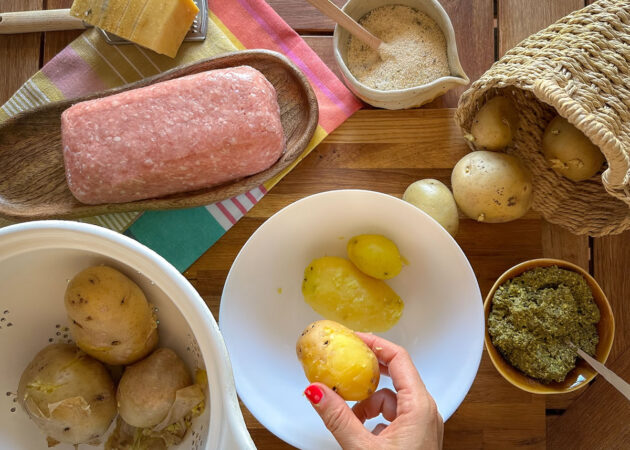 - Lessare le patate, lasciarle intiepidire e pelarle;