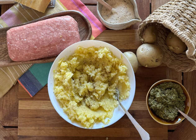 - Schiacciare le patate in una ciotola, regolare di sale e di pepe;