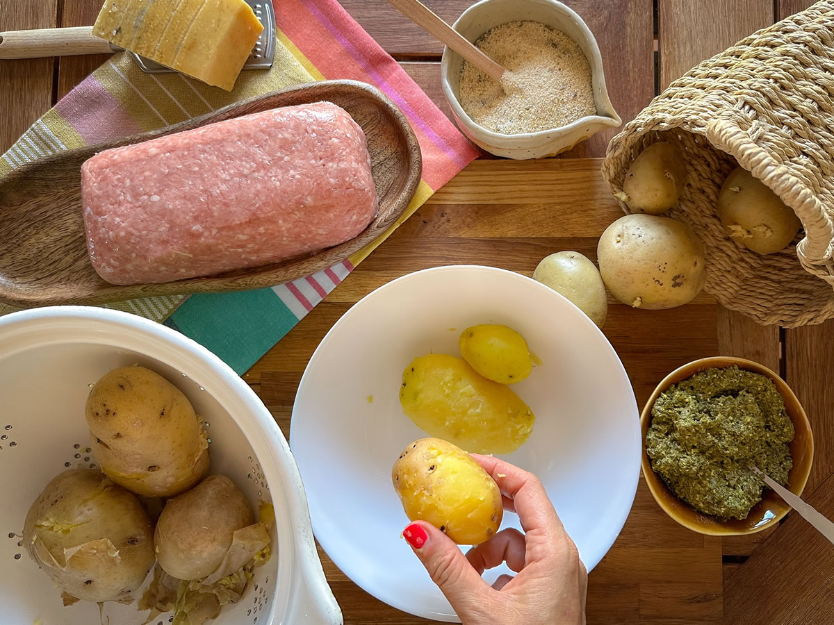- Lessare le patate, lasciarle intiepidire e pelarle;