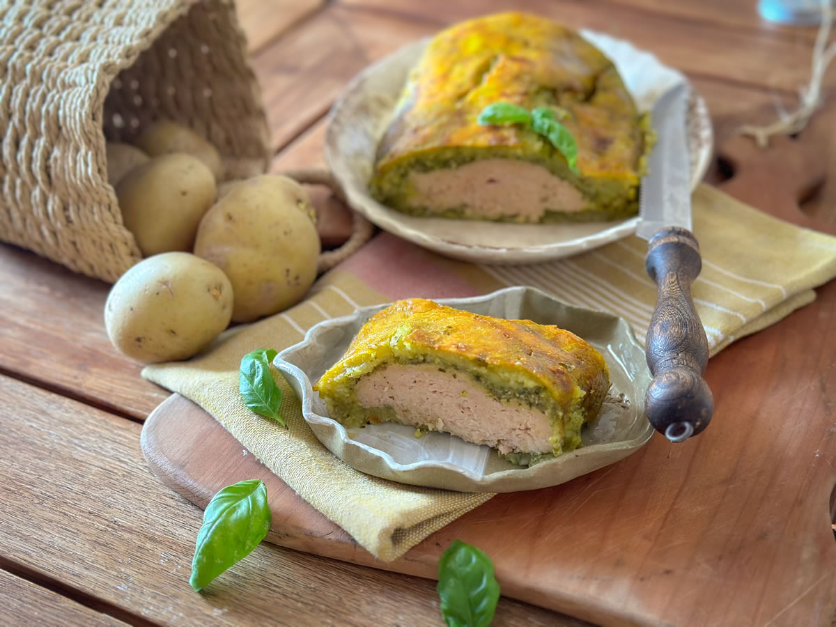 - Foderarlo con le patate aiutandosi a rotolarlo alzando la carta forno;