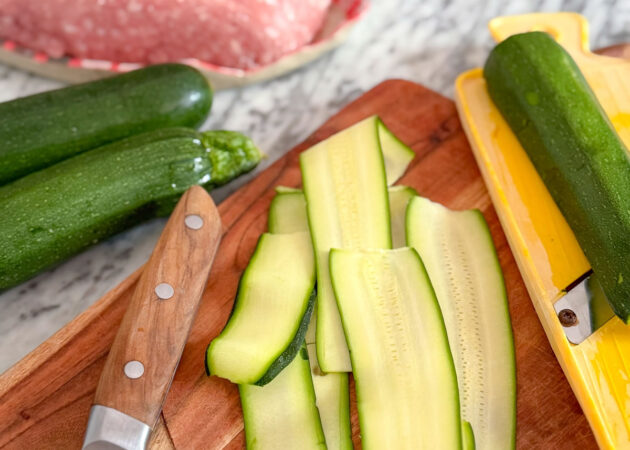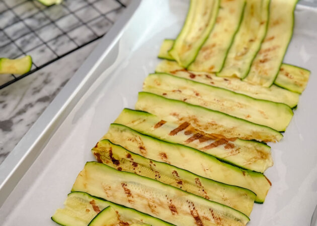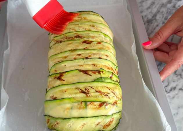 - Creare un letto di zucchine, sovrapponendole di qualche mm;
