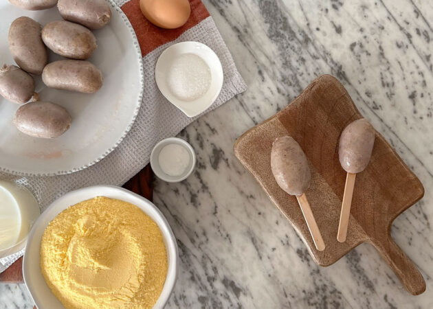- Scolare bene la pastella in eccesso e friggere tenendo lo stecco con una pinza;