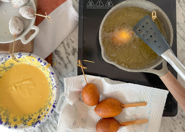 - Quando il Corn Dog sarà dorato, scolare e continuare con tutti gli altri;