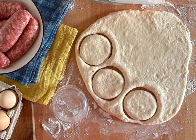 - Disporre i cerchi di impasto sulla carta forno e spolverare con la farina di semola anche sopra;