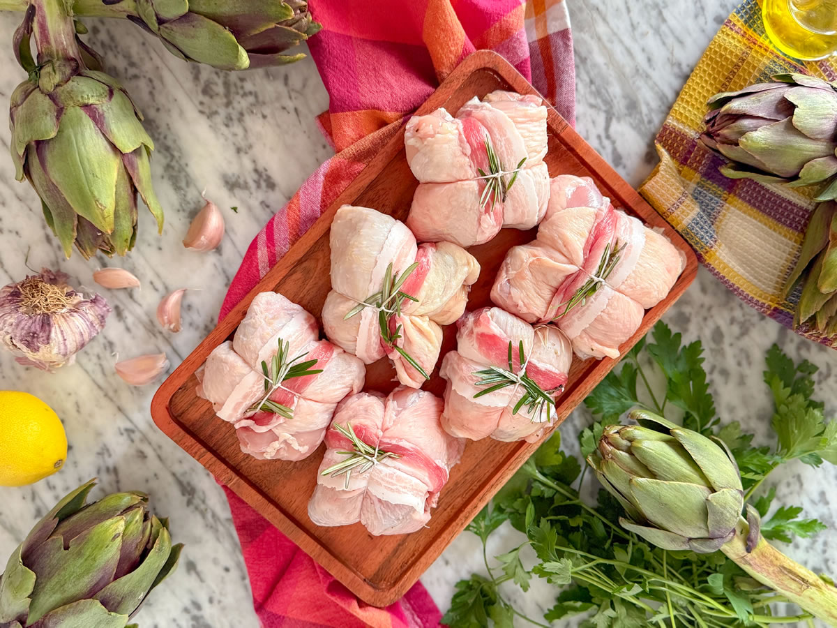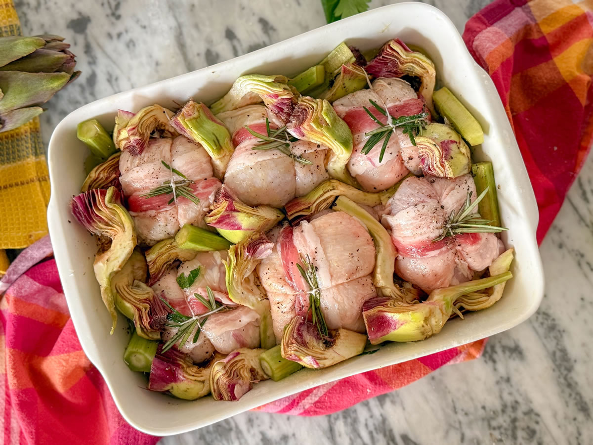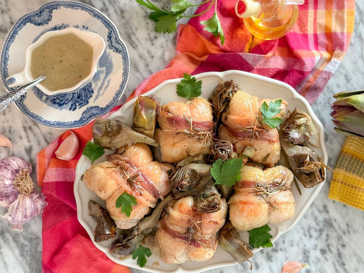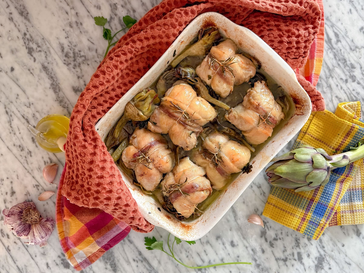 - Cuocere in forno a 200° per un’ora avendo cura di girare i fagottini e i carciofi di tanto in tanto;