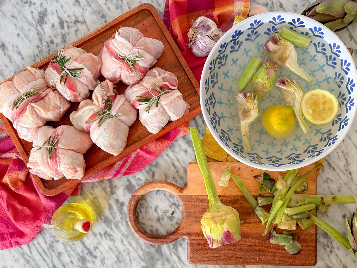 - Ridurre i carciofi in quarti e i gambi a pezzi;