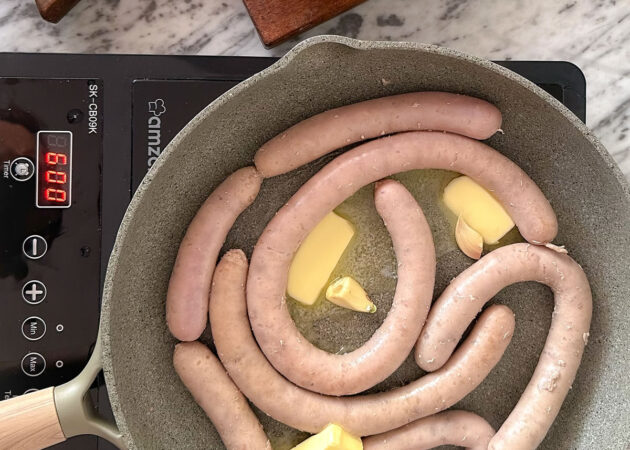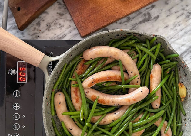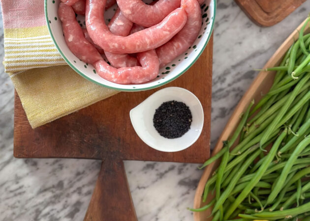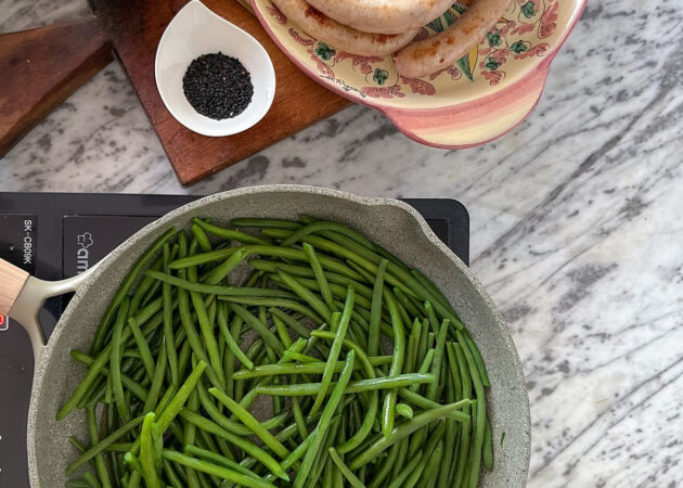 - Togliere la salsiccia dalla padella e saltare i fagiolini nel fondo di cottura aggiungendo gli altri 10 g di burro;