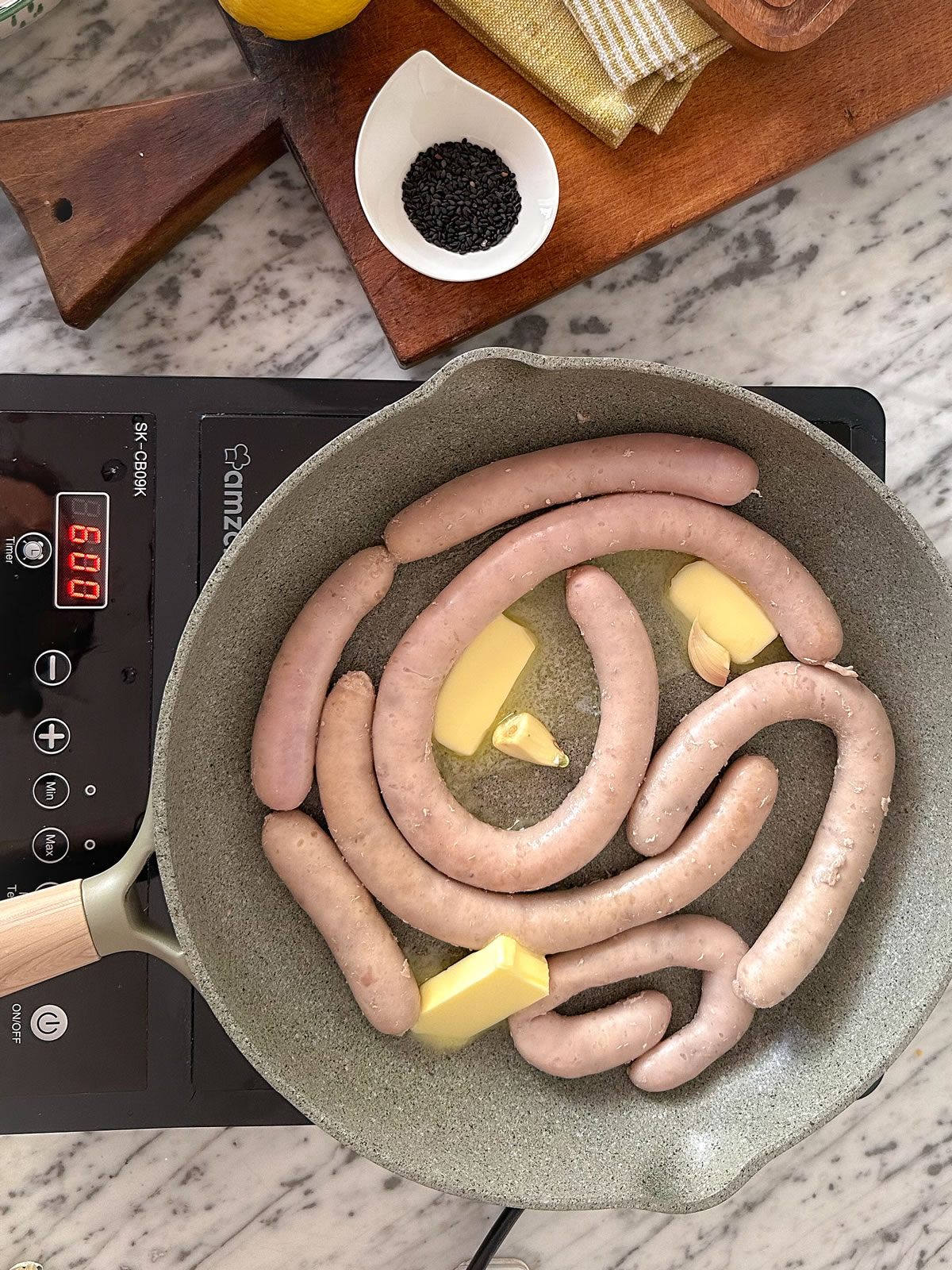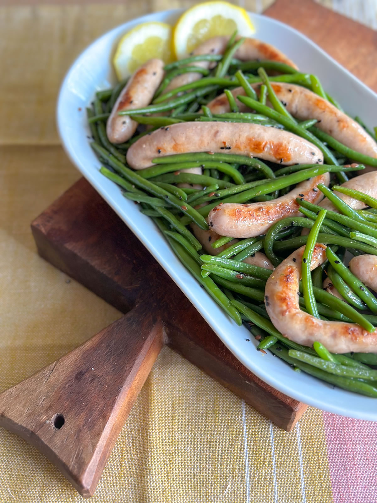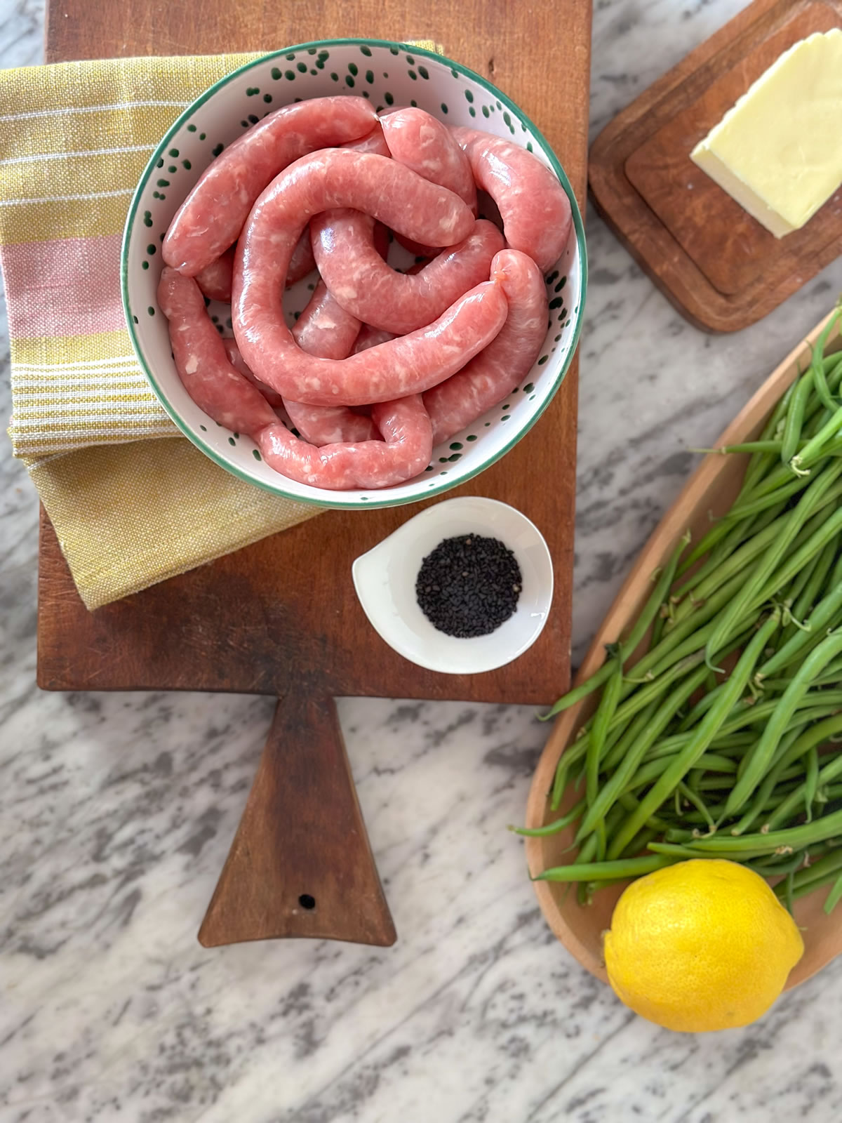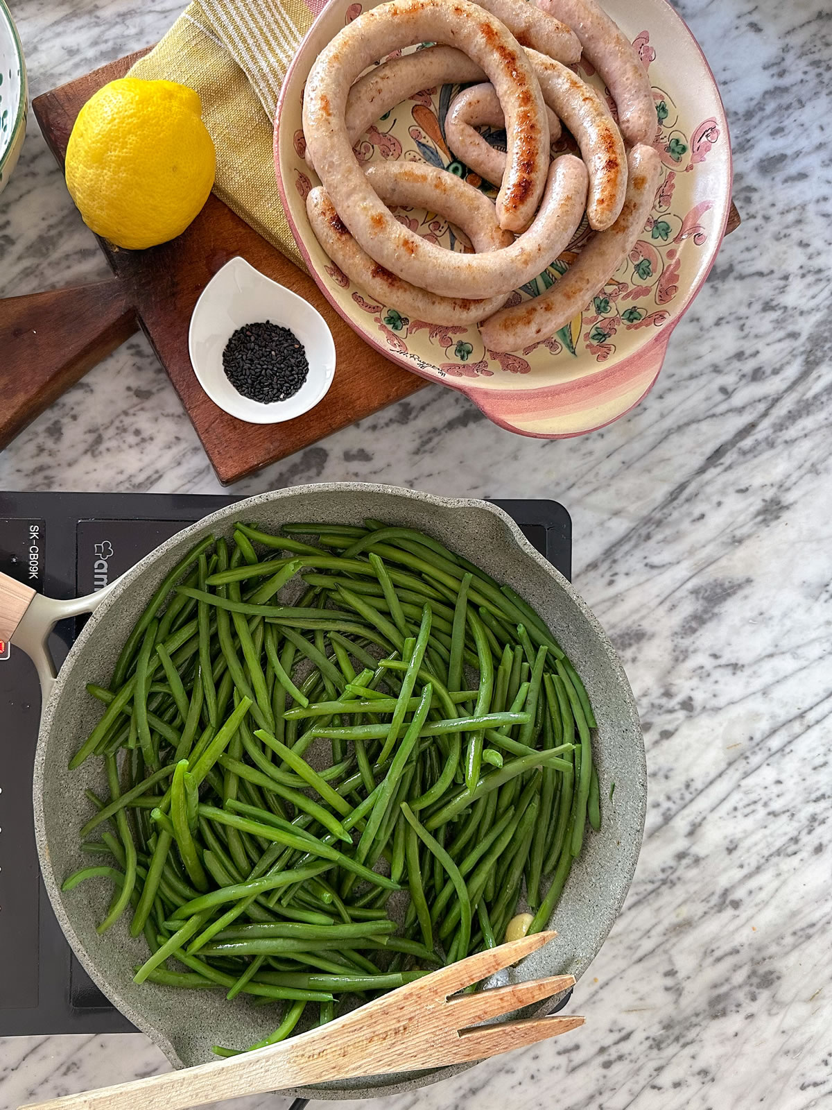 - Togliere la salsiccia dalla padella e saltare i fagiolini nel fondo di cottura aggiungendo gli altri 10 g di burro;