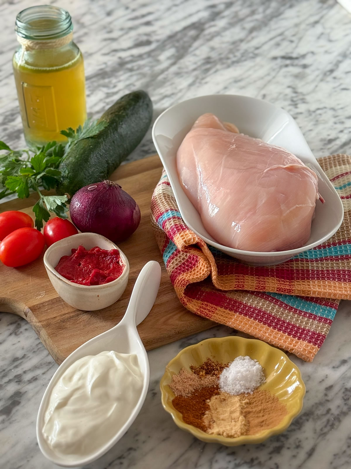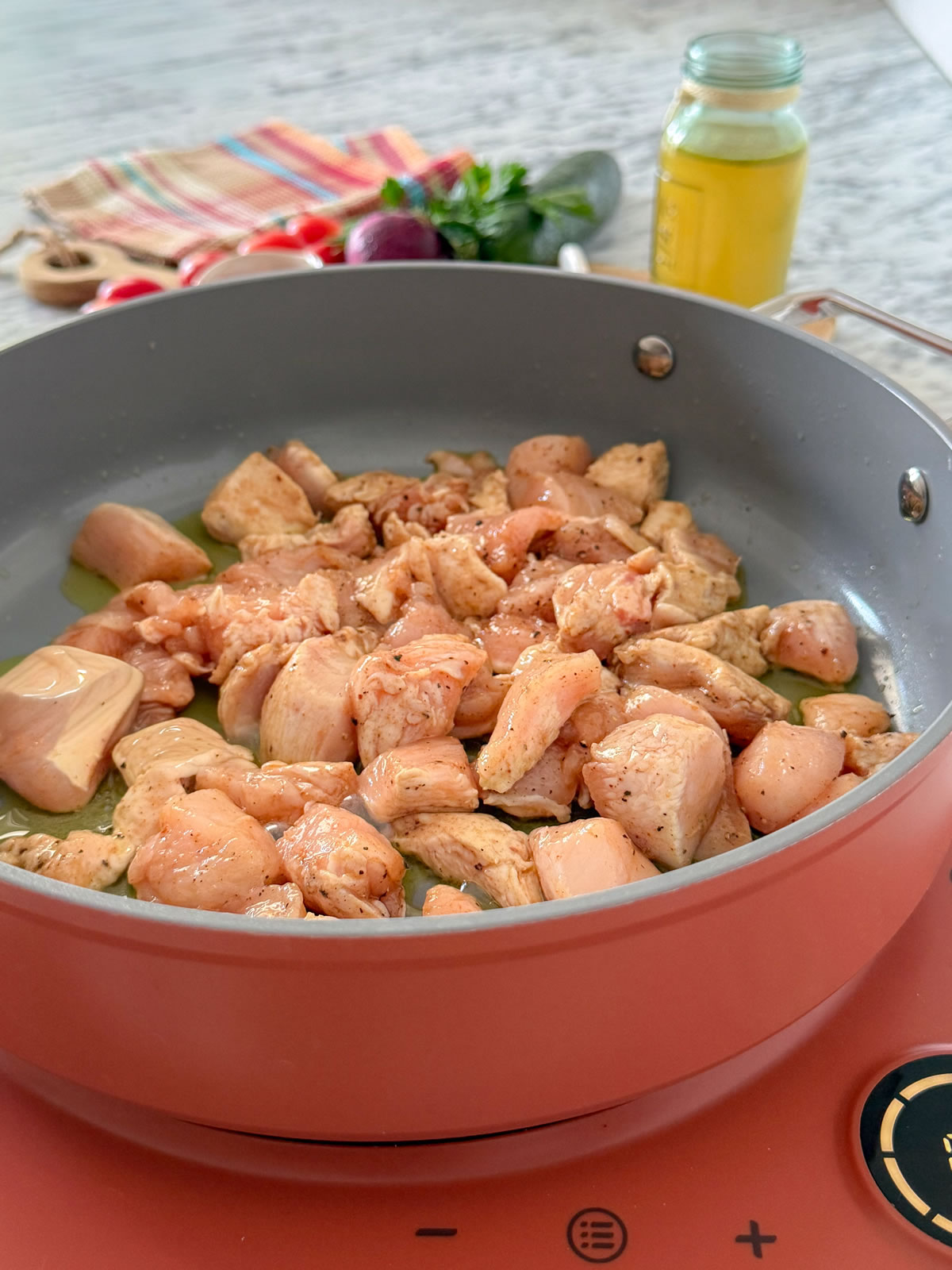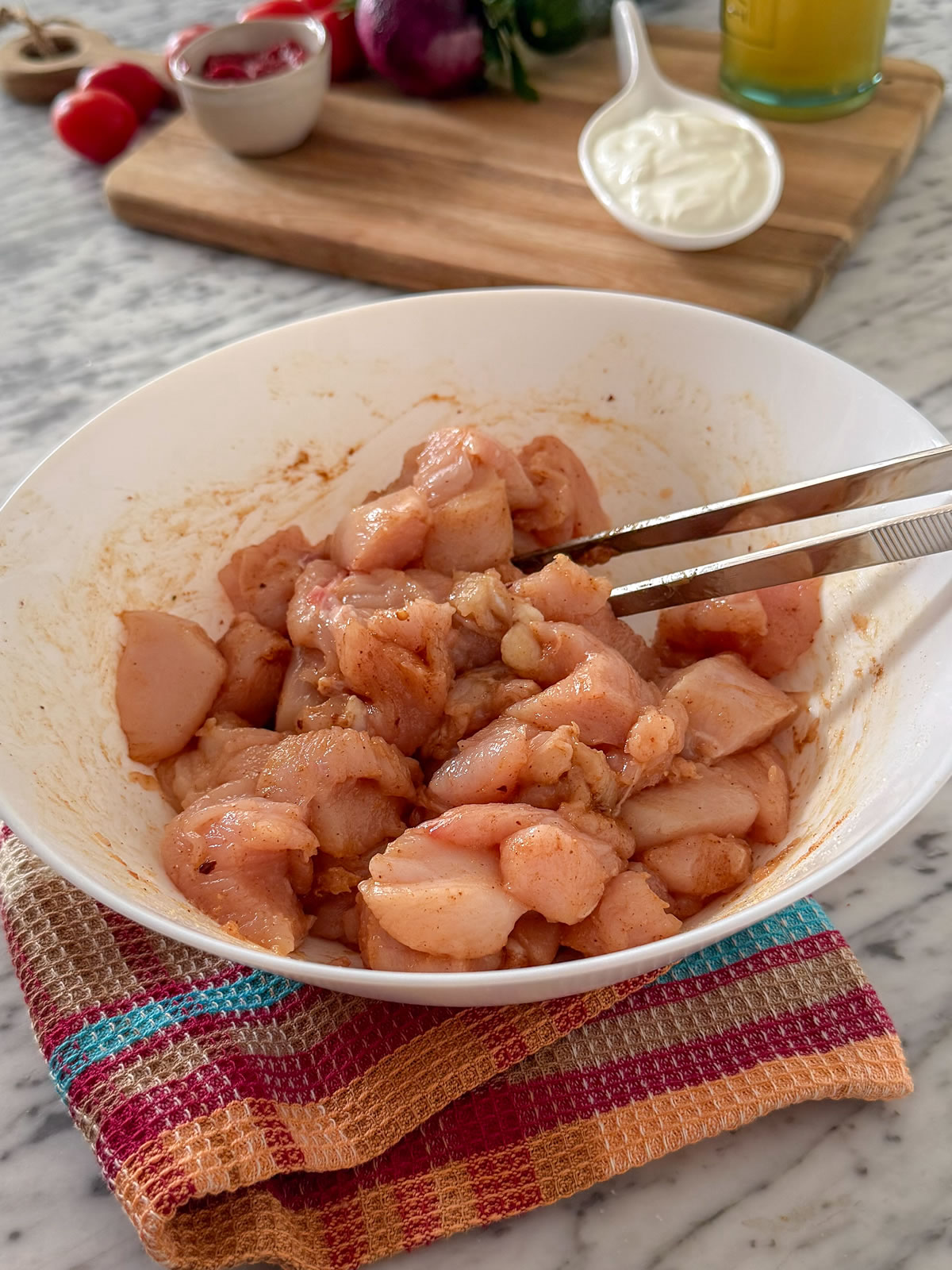 - In una ciotola aggiungere il pollo, un cucchiaio di olio EVO e il mix di spezie;