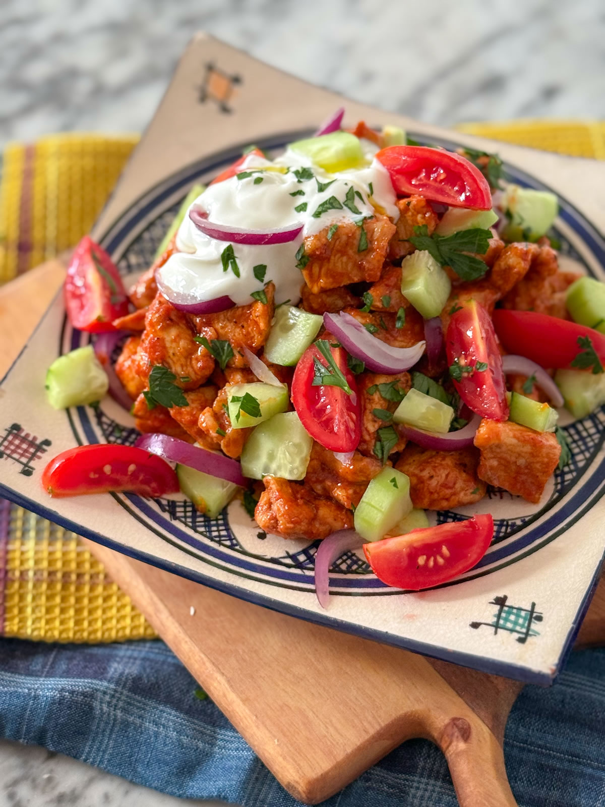 - Servire con del pane arabo e del riso.