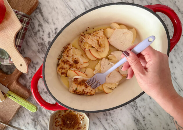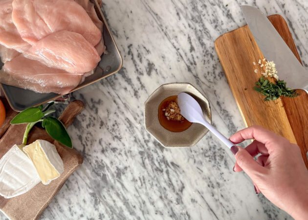 - Preparare la glassa unendo in una ciotola lo sciroppo d’acero, la senape, l’aglio e la salvia;
