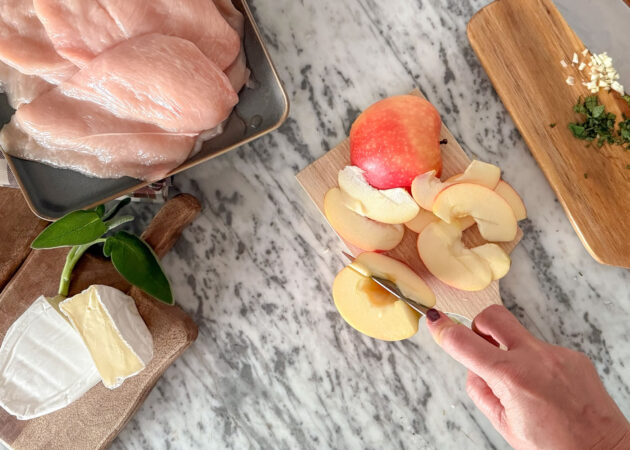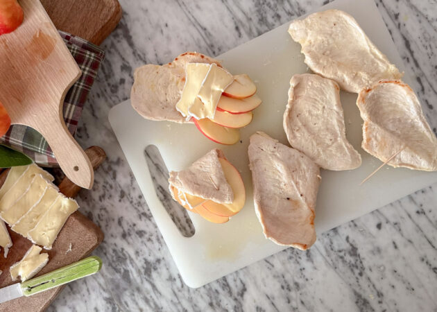 - Su una metà adagiare 3/4 fettine di mele e due fette di formaggio;