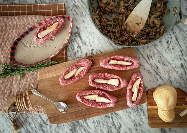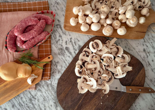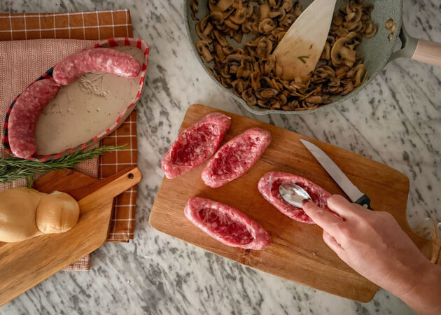 - Prendere le salsicce e fare un’incisione al centro, lasciando un margine di 1 cm sia sopra che sotto, senza arrivare a tagliare il fondo;