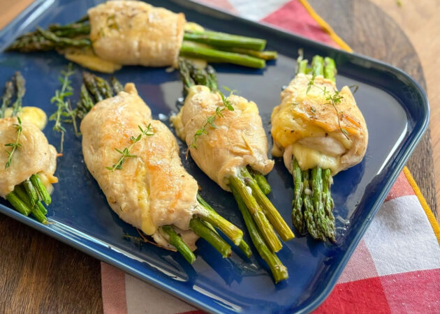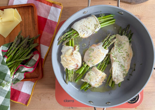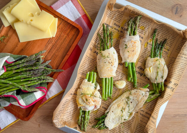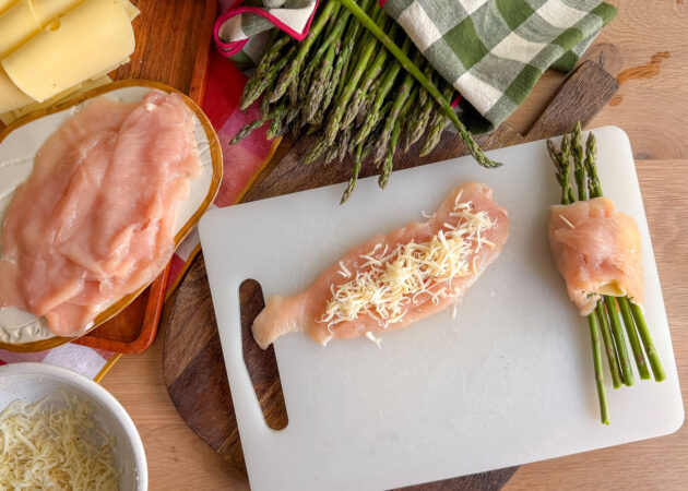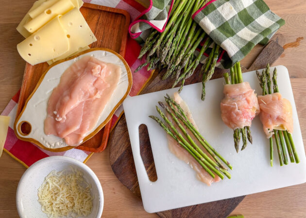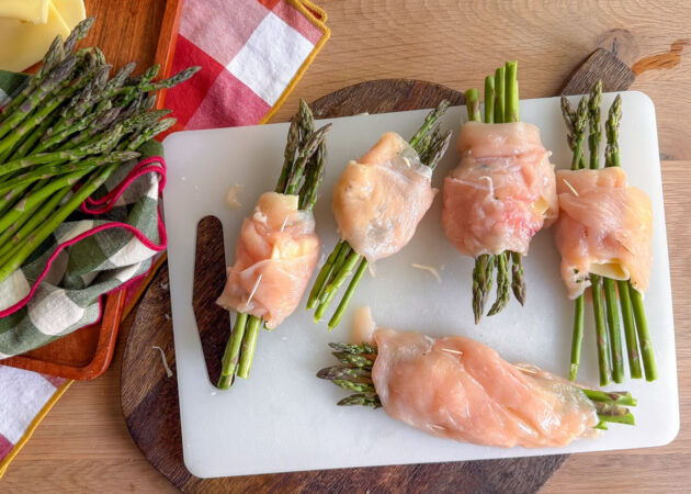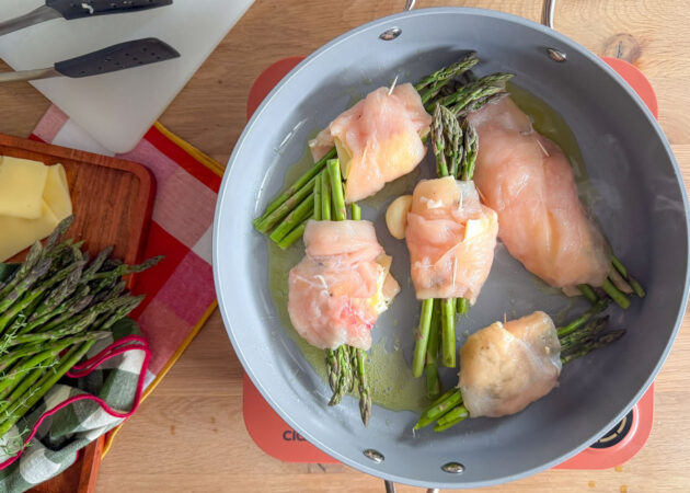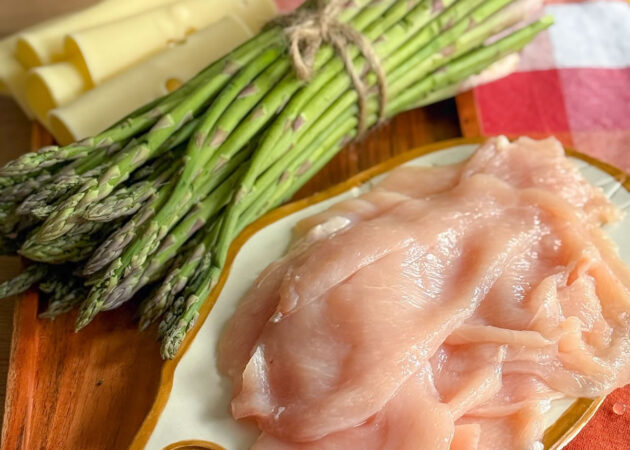 - Posizionare ora 5 asparagi al centro della fettina;